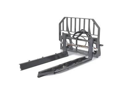 - Multi-purpose attachment features standard pallet forks for handling pallets and construction materials, and slip-on fork sleeves for handling nursery stock